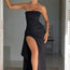 Stap in de schijnwerpers met de Strapless Jurk met Hoge Split en Open Rug