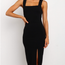 Deze jurk is gewoon prachtig! Onze Vierkante Hals Franse Splits Hoge Taille Jurk heeft een vierkante halslijn, dikke schouderbanden en een rits in een donkere toon die door de achterkant loopt voor gemak bij het aantrekken! Maak je look compleet met textuurrijke golven, een met goud versierde clutch en doorzichtige hakken wanneer je op stap gaat voor bubbels met de meiden!